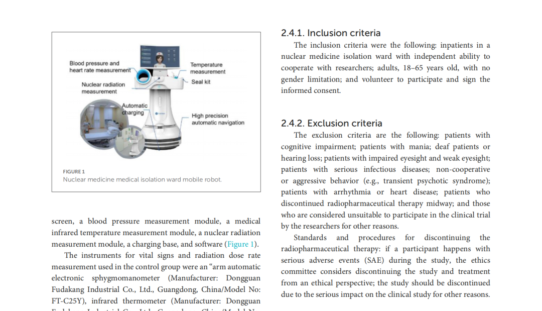 關(guān)于鈦米核醫(yī)學(xué)病房機(jī)器人的臨床研究在國(guó)際學(xué)術(shù)期刊《 Frontiers in Public Health》發(fā)表